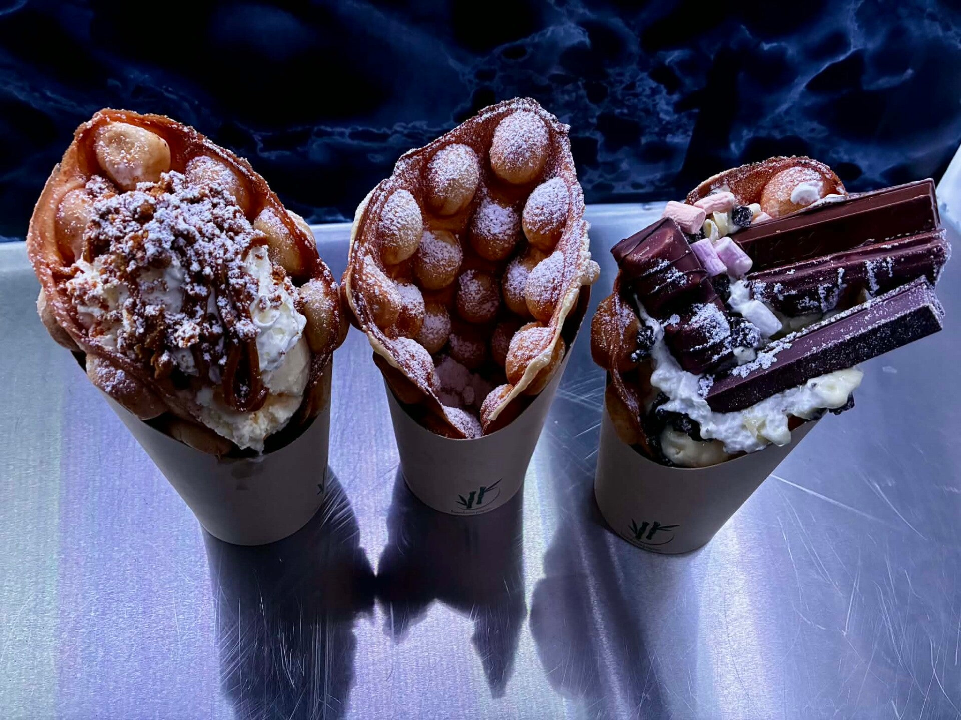 Proef onze unieke bubbelwafels, elke dag vers gebakken met ons eigen deeg. Knapperig vanbuiten, zacht vanbinnen en klaar om belegd te worden met jouw favoriete toppings. Een ware traktatie!